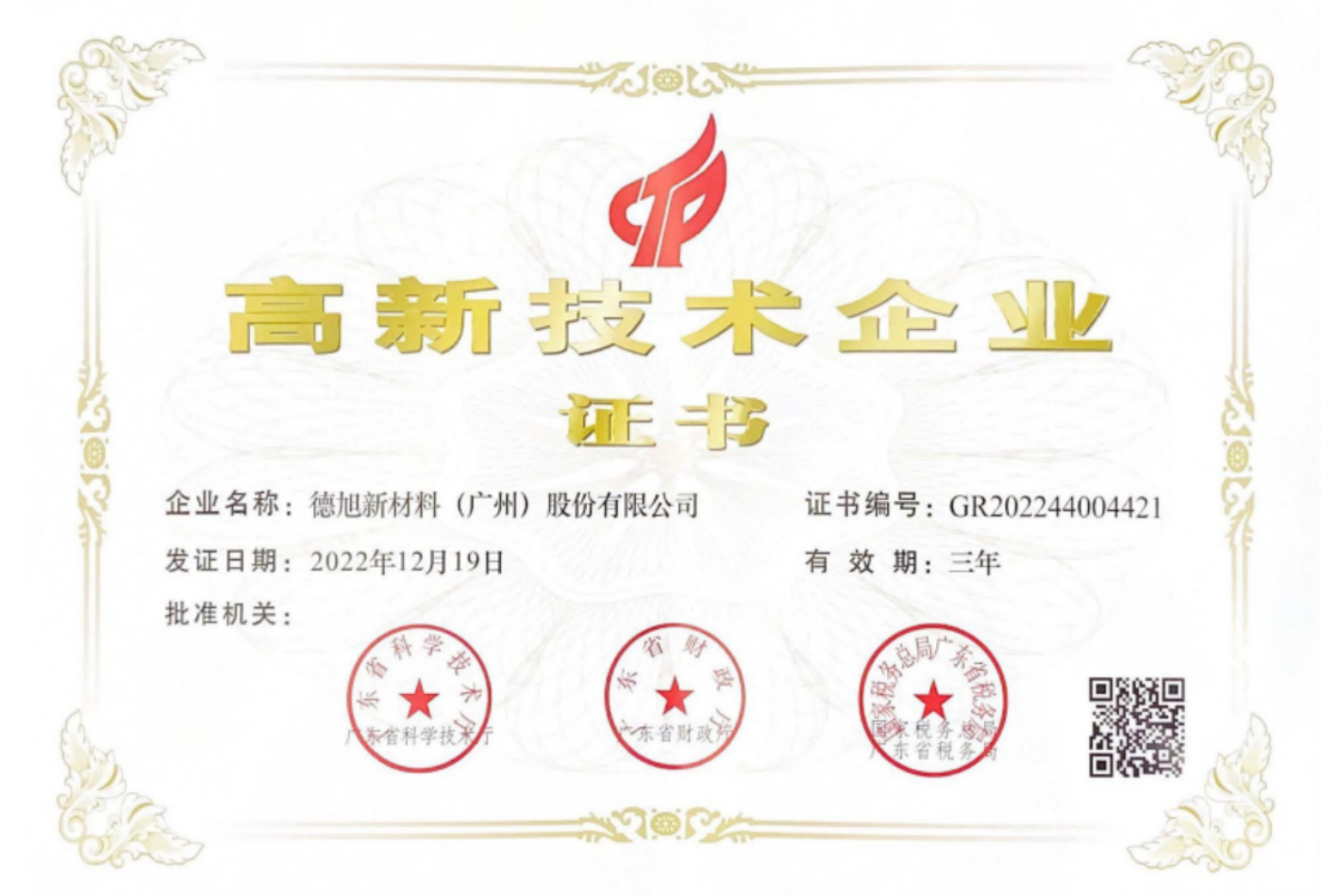 德旭新材料(廣州)股份有限公司成立于2012年,坐落于國內(nèi)新材料領(lǐng)域創(chuàng)新集聚區(qū)的廣州高新技術(shù)產(chǎn)業(yè)開發(fā)區(qū)核心位置——廣州科學(xué)城,是一家集研發(fā)、生產(chǎn)、銷售于一體且擁有自主知識產(chǎn)權(quán)的專精特新企業(yè)。長期專注于金屬材料的防腐蝕研究與創(chuàng)新,為汽車與船舶、航空航天、半導(dǎo)體及3C電子、新能源、水性防腐涂料等領(lǐng)域的金屬防腐蝕提供產(chǎn)品和解決方案。同時也服務(wù)于工業(yè)潤滑、金屬表面處理、工業(yè)、商用和民用重油污清洗和益智玩具等行業(yè)。公司產(chǎn)品獲得BASF(巴斯夫)、HP(惠普)、漢高、美泰、MOOSE、中國船舶、中國機(jī)械總院、安集、匯川、三環(huán)、晨光等國內(nèi)外知名企業(yè)的青睞。
